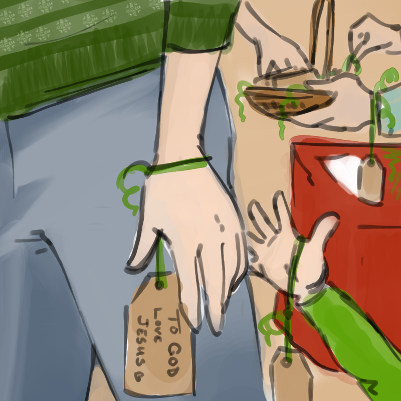 As each person entered church they were given a tie-on gift tag. After present showings, readings, prayers and carols I made three brief points. * We love to receive gifts * Jesus is God’s gift to us and we celebrate with joy * Write on the tag: ‘To God with love from Jesus’ and tie it to your neighbour’s wrist. Jesus gives US as gifts to God and God rejoices to receive us (with singing).