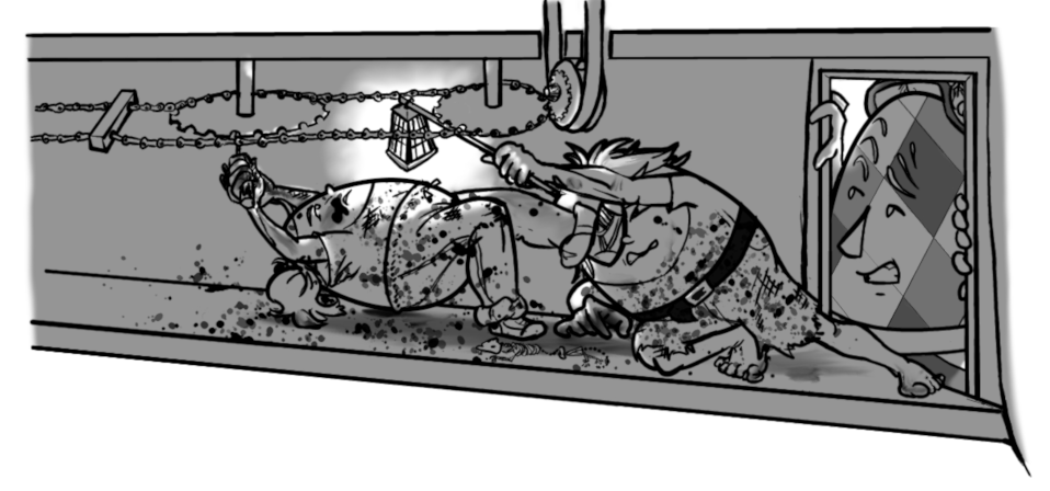 Lying outstretched, [Jenny] edged forward on fingers and toes. She twisted onto her back and filth dripped into her eyes. Blinking it away, she looked at thes piece of twisted metal that was causing the problem. She put the candle in her mouth so she could use both hands. She held onto the chain with one hand and worked the rusted object out of the links with the other.