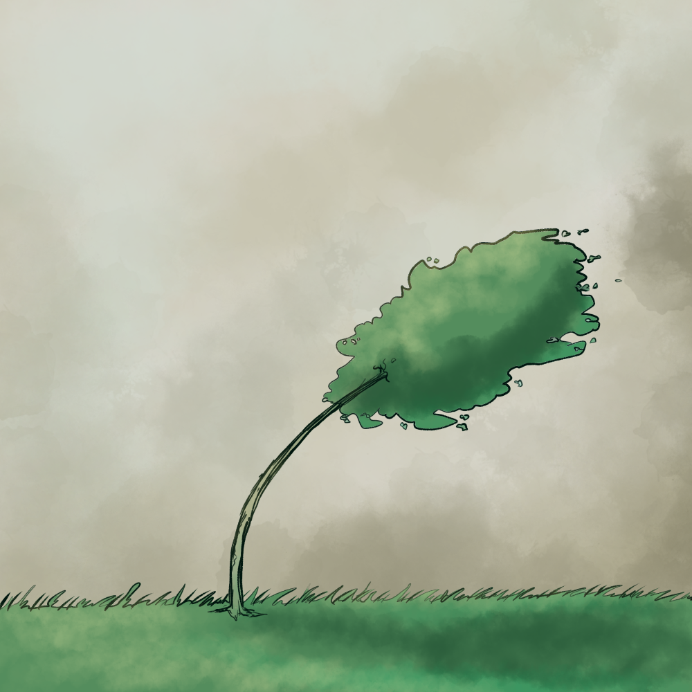 A young tree, slender, straight, smooth barked, gracefully bowing in the winter’s gale.
